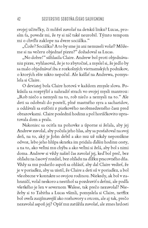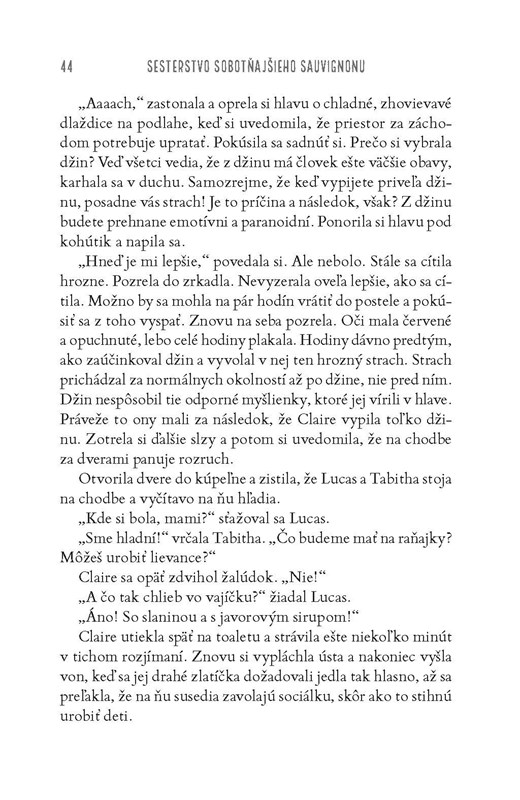 Manžel jej zahol s najlepšou kamarátkou. Deti na ňu volajú sociálku, vždy keď ich chce nakŕmiť brokolicou. Našťastie však má kamarátky, ktoré spája náklonnosť k tekutej terapii. Spoločne sa im hádam podarí presvedčiť Claire o tom, že život zreje ako kvalitné červené víno. Alebo aspoň o tom, že ponúka niečo lepšie než len žehlenie, varenie a večné upratovanie po lenivých a prefíkaných potomkoch.