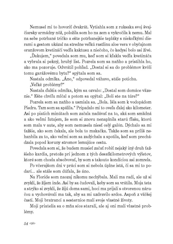 Lenže byt jej neprenajal Tobias Rhodes, ale jeho dospievajúci syn Amos. Drsný a nevrlý Rhodes si zúrivo chráni rodinu, nedôveruje cudzím a od optimistickej Ory si drží odstup. Tá sa jeho správaním nedá odradiť, ďalej podniká túry, ktoré pred mnohými rokmi absolvovala jej mama, a pri rozhovoroch pri táboráku pomaly rozoberá jeho obranný múr. Nezlomné priateľstvo onedlho prerastá do lásky, aká vykvitne len raz za život.