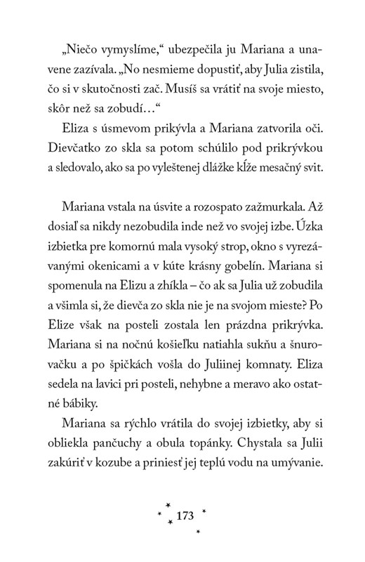 Mariana žije so svojou rodinou na benátskom ostrove Murano, preslávenom umelcami, ktorí vytvárajú majstrovské diela zo skla. Keď však Marianina mladšia sestra Eliza zomrie, ich otec sa rozhodne využiť svoje sklárske nadanie so štipkou mágie a vytvorí dievča zo skla s Elizinou podobou.