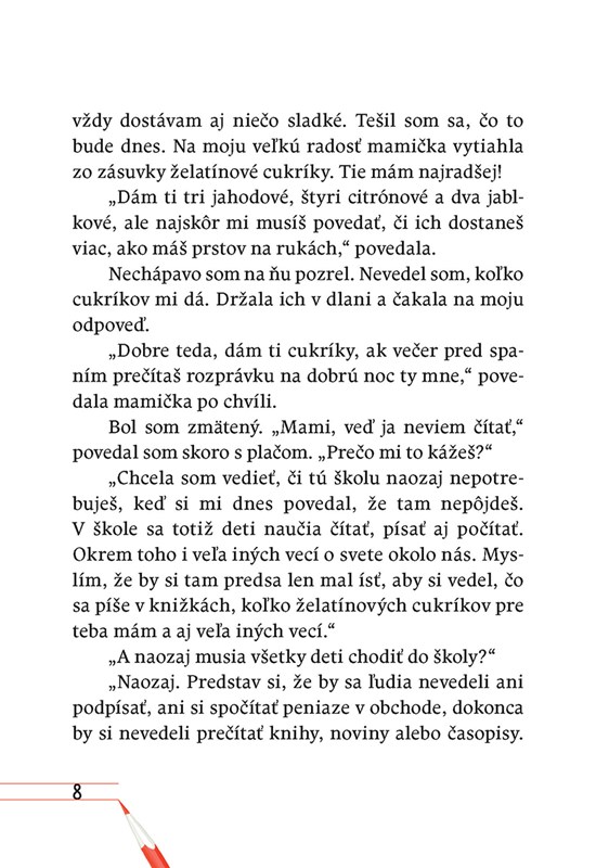 Prečítajte si veselé príbehy malého predškoláka a prežite s ním jeho prvý rok v škole. Jeho zážitky a dobrodružstvá rozptýlia obavy vašich detí, ktoré sa chystajú do školy, a na prvý školský deň sa budú určite tešiť. Dozvedia sa, ako to vyzerá na zápise, čo je šlabikár a čo všetko sa musí zmestiť do aktovky, prečo v škole zvoní, načo je žiacka knižka a čo robia týždenníci. Kniha je navyše plná veselých ilustrácií a milých básničiek.