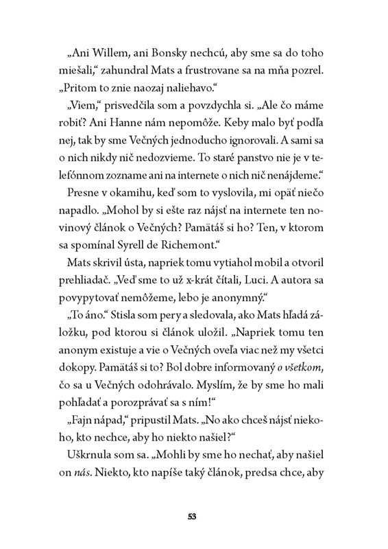 Znenazdania sa však v celom meste objavia zvláštne izbové vône a stopa vedie práve k vodcovi Večných Syrellovi de Richemontovi. Luci je jasné, že musí okamžite konať, kým nebude neskoro...