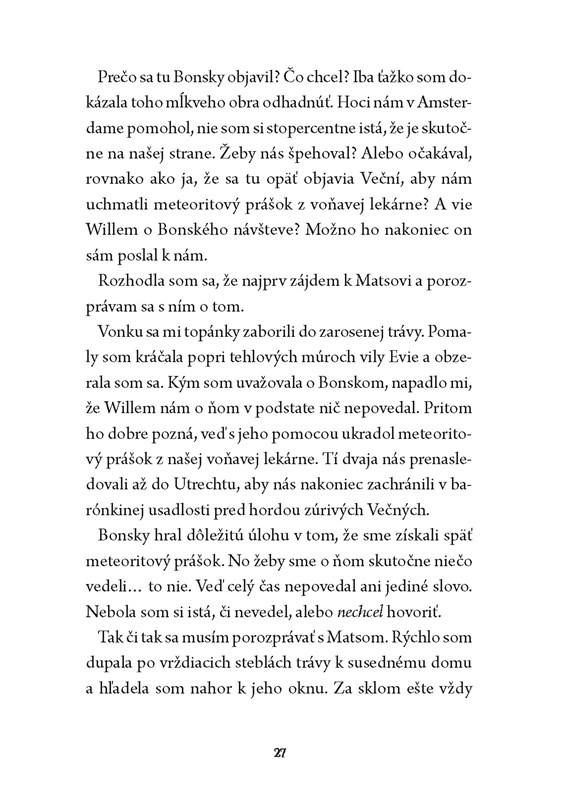 Luci Alvensteinová má tajomstvo. Hlboko pod ich domom sa ukrýva neobyčajná miestnosť – voňavá lekáreň! Tu sa vyrábajú magické vône, v ktorých drieme obrovská a často veľmi nebezpečná moc. Moc, ktorá sa v žiadnom prípade nesmie dostať do nesprávnych rúk.