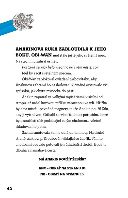 Připoj se k Obi-Wanu Kenobimu a Anakinu Skywalkerovi při jejich pátrání po zajatém mistru Jedi Yodovi a vydej se po jejich boku na napínavou misi. S více než dvaceti vyústěními příběhu tě čeká nejen mnoho nelehkých rozhodnutí, ale i řada nebezpečenství: střetnutí s ničemnými bitevními droidy, maskovanými útočníky i zrádnými Hutty. Vyprav se s napínavým gamebookem do předaleké galaxie za velkým dobrodružstvím a zvol si svůj osud. Síla tě provázej!