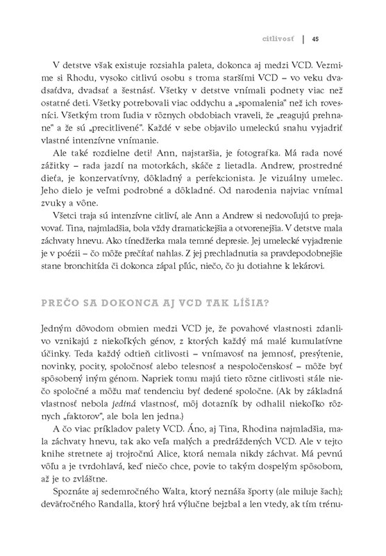 V kapitolách venovaných potrebám jednotlivých vekových skupín, od novorodencov až po tínedžerov, prináša kniha Vysoko citlivé dieťa láskavé a aktuálne informácie pre učiteľov, rodičov a ich citlivé deti.