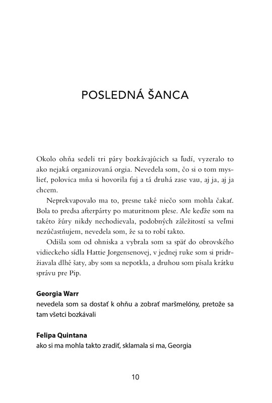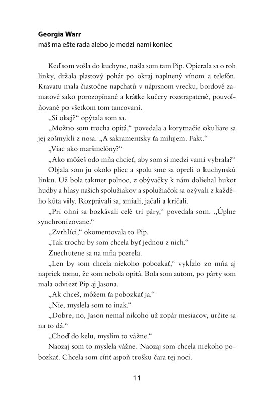 Georgia nebola nikdy zamilovaná, nikdy sa s nikým nebozkávala, dokonca sa jej nikto ani len nepáčil – ale ako každá šialená romantička je presvedčená, že jedného dňa sa objaví ten pravý.
