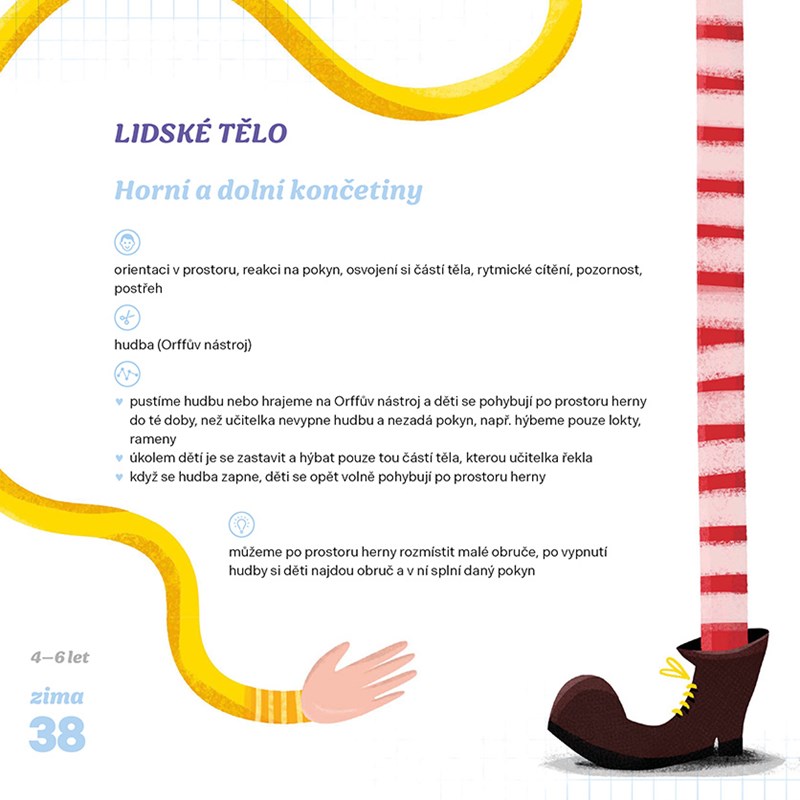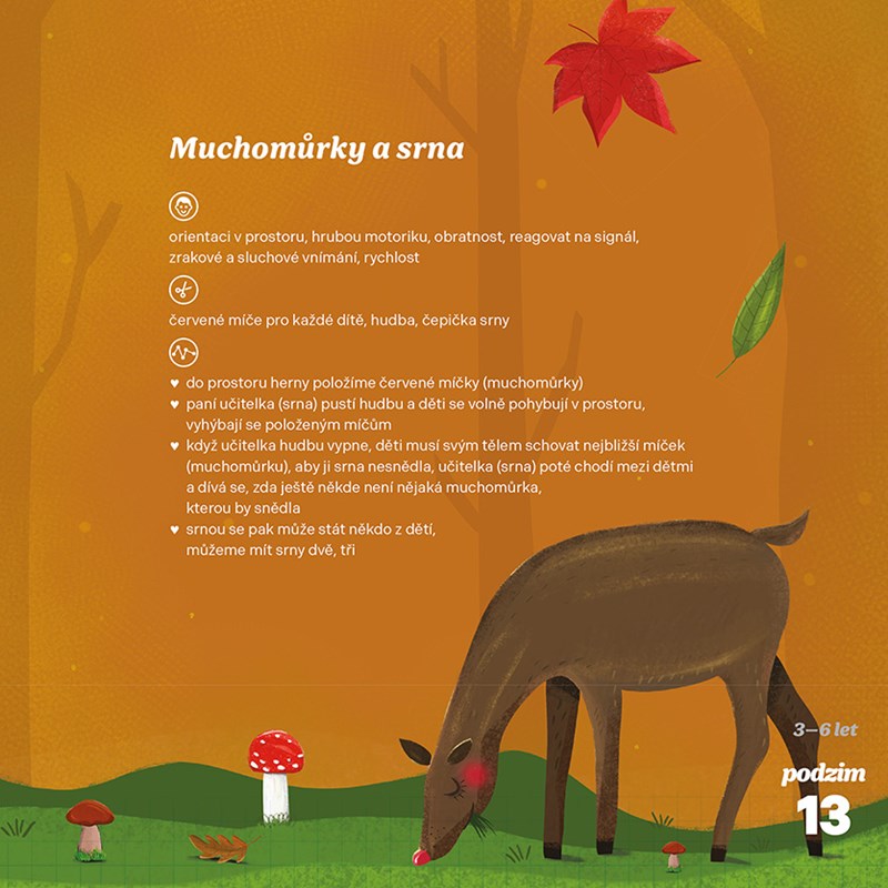 Kniha představuje soubor rozmanitých pohybových her vhodných pro děti od 3 do 6 let, které jsou zaměřené na různé oblasti rozvoje dítěte: na kooperaci, prosociální cítění, rozvoj pohybových dovedností a schopností, jež se prolínají i s rozvojem pozornosti, s prostorovou orientací či smyslem pro rytmus. Mnohé hry povzbuzují děti k tvořivosti a ke zpřesňování jejich postřehu.