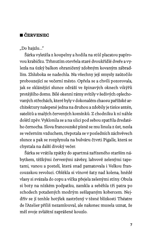 Ivan by mohl být Šárčiným otcem. Mezi úspěšným spisovatelem a jeho talentovanou múzou ale navzdory věkovému rozdílu trvá inspirativní milostný vztah. Po návratu z letní dovolené ve Francii však na Šárku začnou dotírat osudové otazníky… a také samotářský restaurátor Bartoloměj. Čas je najednou pro všechny bolestné téma. Šárka se bude muset brzy rozhodnout, kam svůj budoucí život nasměruje. A zatímco si mezi barokními zdmi Santiniho staveb hraje na tichou poštu, netuší, že není jediná, kdo ostatní tahá za nos.