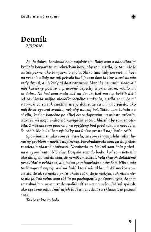 Po úspešnom debute Krásni ľudia prichádza Zuzana Šimeková so svojím druhým románom Ľudia nie sú stromy. Zostáva verná skúmaniu ľudského vnútra, krehkosti vzťahov, nástrahám modernej doby a hľadaniu vlastnej identity.