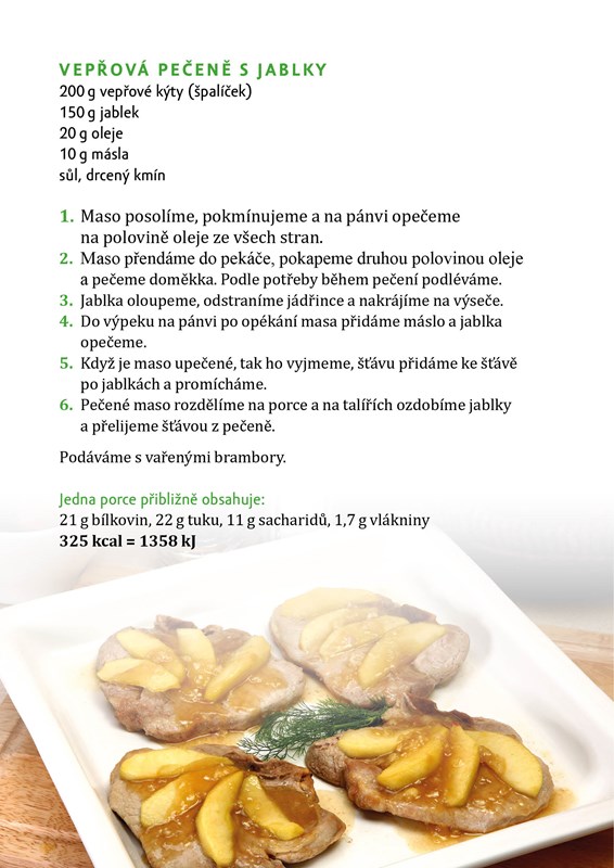 Malá diabetická kuchařka přináší recepty pro diabetiky, ale i pro ty, kteří se chtějí stravovat zdravě. Součástí všech receptů jsou propočty živin a energie, a tak si každý může vypočítat pro sebe to nejlepší. Postup přípravy jídel je v receptu napsán v bodech. Tento způsob jistě potěší a využije i každý začátečník. Při onemocnění diabetu je velmi důležité vybírat si takové potraviny, které mohou pomoci příznivě ovlivnit glykémii nebo hmotnost. Kuchařka přináší chutné recepty, které přitom lidskému tělu zajišťují dostatek energie a všechny základní složky pro jeho plnohodnotné fungování. Díky správně sestavenému jídelníčku by měly být dosaženy dva základní cíle – optimální tělesná hmotnost a hladina cukru po jídle co nejbližší zdravému člověku.