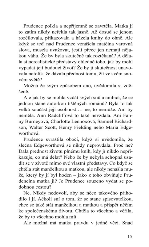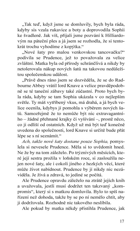 Prudence Giffordová odjakživa věděla, že je domluvený sňatek její starší sestry Sophie se synem souseda, lordem Knavem. Ale jako budoucí spisovatelka romantických příběhů vždycky tvrdila, že by se lidé měli brát pouze z velké lásky. Proto se snaží, aby se mladí lidé do sebe zamilovali. To však netuší, že přitom může pocítit k lordu Knaveovi něžné city ona sama…