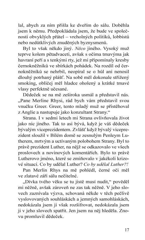 Jmenuji se Greer Gallowayová a sloužím k potěše prezidenta Spojených států. Tohle je příběh americké královny.