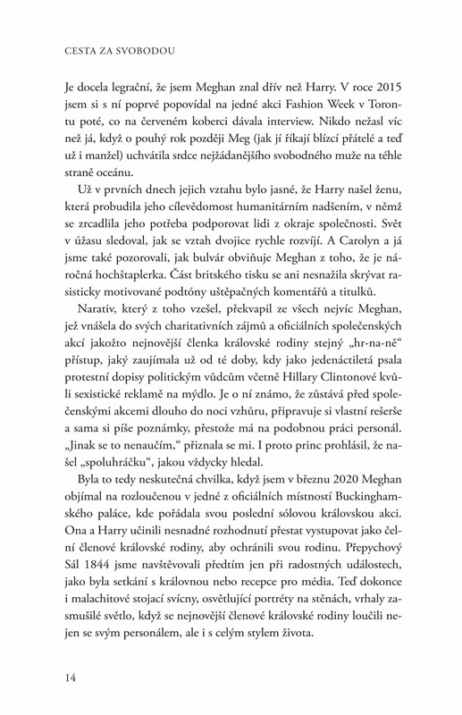 Když se objevily zprávy o klíčícím romantickém vztahu mezi milovaným anglickým princem a americkou herečkou, upoutaly pozornost celého světa a rozpoutaly šílenství mezinárodních médií. Vévody a vévodkyně ze Sussexu byly sice vždycky plné noviny - od jejich zasnoubení, přes svatbu a narození syna Archieho, až po bezprecedentní rozhodnutí odejít ze života členů královské rodiny -, ale pravdivý příběh Harryho a Meghan zná jen málokdo. Cesta za svobodou poprvé vstupuje za novinové titulky, odhaluje neznámé detaily společného života Harryho a Meghan a vyvrací mnohé klepy a mylné dohady, které pronásledují dvojici na obou stranách oceánu. Jako členové vybrané skupiny novinářů, kteří se zabývají britskou královskou rodinou a jejími činnostmi, byli Omid Scobie a Carolyn Durandová svědky života mladého páru tak, jak se to podařilo jen málokomu zvenčí.