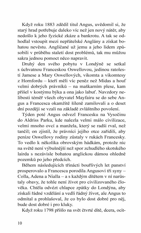 Místo toho však Amelii-Rose zaujme sám Niall, a to navzdory všem výhradám, které proti barbarským horalům chová. Pro Nialla je dívka také neodolatelná, ale nehodlá udělat stejnou chybu jako jeho otec a oženit se s Angličankou, která nemá ráda Vysočinu. Má v sobě to, čeho je třeba, aby si získal její srdce? To se dá zjistit jen jedním způsobem… "