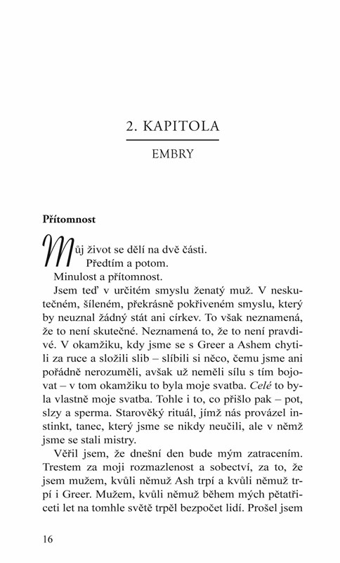 Jen s Maxenem a Greer dává můj život smysl, jen s nimi dokážu najít klid a mír a zahnat démony, kteří mě pronásledují. Muže jako já však šťastný život nečeká. Nezasloužíme si ho. Měl jsem tušit, že láska tak ostrá jako naše dokáže ranit z obou stran.