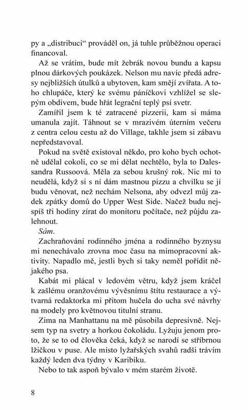 Dominic Russo. Na pohled odtažitý, zádumčivý, nepřístupný muž, ctižádostivý šéf, kolem kterého podřízení chodí po špičkách. Ally Moralesová. Nezávislá, otevřená, optimistická a kurážná žena, která se umí postavit za sebe i za druhé a nenechá se odradit neúspěchem.