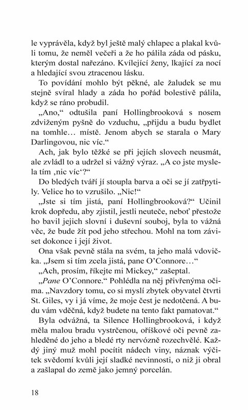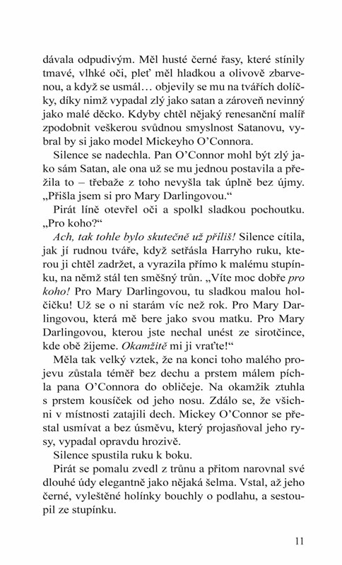 I tady ji však čeká nečekaný úder. Silence zjišťuje, že holčička je nejspíš dcerou neblaze známého říčního piráta Fešáka Mickeyho O'Connora, který způsobil její odcizení s manželem, pro něhož se obětovala. O to víc ji děsí, když pirát holčičku unese do svého paláce a Silence nabídne, že pokud chce být s ní, musí se ubytovat v paláci také, alespoň do doby, než se zbaví svého největšího protivníka, šíleného Vikáře z Whitechapelu, který jde tvrdě po Mickeym i po všech, kdo jsou mu blízcí.