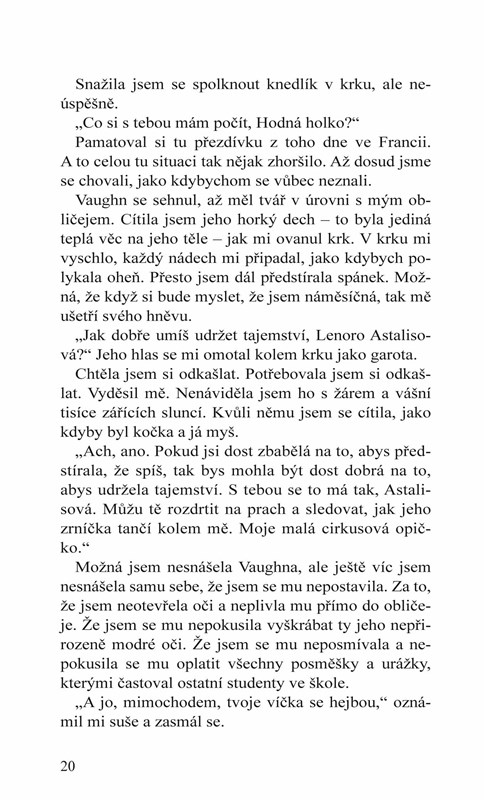 Říkají mu rozzlobený bůh. Pro mě není ničím jiným než bezcitným princem. Jeho rodiče ovládají naše město, policii, každého občana i butik na hlavní třídě. Jediné, co mám já je nesmiřitelná zášť vůči němu, protože mě málem zničil. Ani ve snu by mě nenapadlo, že mě bude pronásledovat až za oceán. A teď je tady, žije se mnou v temném, tajuplném sídle na okraji Londýna. Říká se, že tady straší. Je to pravda. Zámek Carlisle ukrývá naše nejtemnější tajemství.