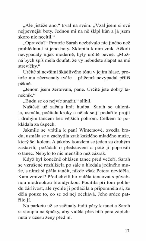Její slib je podroben zkoušce o pět let později, kdy otec odmítne její mladší sestře Bethii dát svolení k sňatku s milovaným mužem, dokud se Sarah přinejmenším nezasnoubí. Sarah hledá někoho, kdo by se jí alespoň zdánlivě dvořil, a zoufalý snoubenec Bethie přistoupí k zoufalému činu a sám od sebe sežene muže, který se má Sarah dvořit jen naoko. Podnikatel Ian Collum nevěří, že by ho aristokratka Sarah mohla brát vážně, ale odříkaného chleba největší krajíc… Jak vše dopadne, když se provalí původní záměr obou ctitelů sester Meachamových, se dočtete v půvabné a vtipné romanci spisovatelky Rachael Anderson.