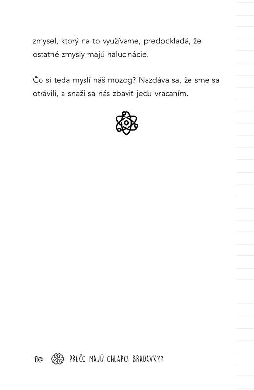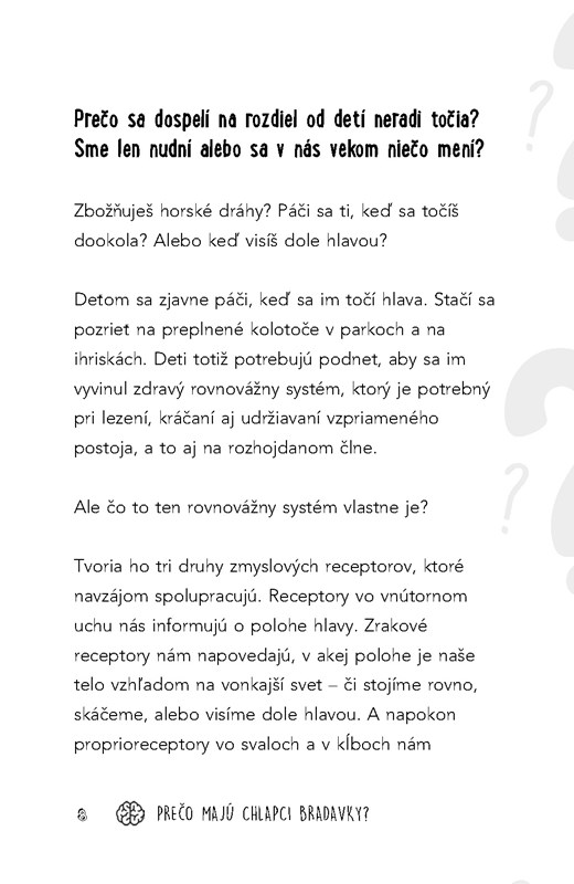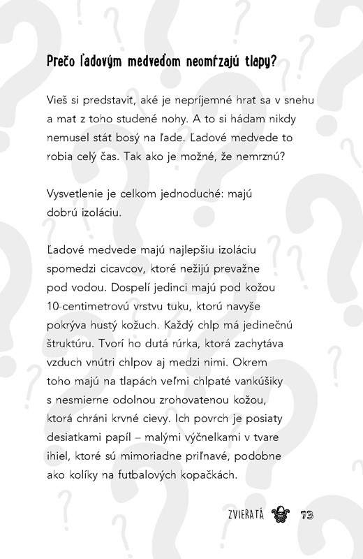 V tejto knižke sa dozvieš, ako získať železo z raňajkových cereálií, že ryby komunikujú prdmi, ako urobiť zelené volské oko, prečo majú tigre pruhy a nie bodky, a mnoho iného.