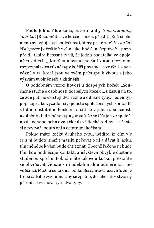 Kočky vyvíjejí ohromné úsilí k tomu, aby s námi komunikovaly. Jsou to vysoce inteligentní nezávislé bytosti, které umí komunikovat s námi lidmi, stejně jako mezi sebou. Tato kniha vám ukáže, jak dobře naslouchat a pozorně kočku pozorovat. Podpoří vás v tom, abyste byli pohotoví a pozorní k oněm mnoha způsobům, jimiž s vámi vaše kočka neustále hovoří. Jakmile přestanete vnímat sebe jako středobod všeho a ztišíte se – fyzicky a především slovně – budete moci lépe posoudit, co se vám pokouší říct. To povede z vaší strany k lepšímu naplňování jejích potřeb, prohloubení pouta důvěry mezi vámi a vytvoření šťastné domácnosti.