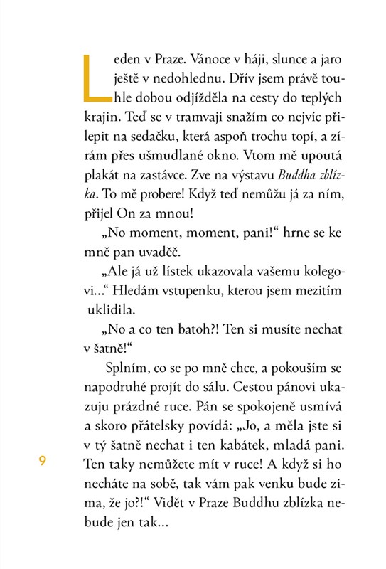 Sbírka povídek o tom, že Buddha v muzeu nemluví, že cesta za Sněhurkou může být strastiplná nebo že bez Papeže Františka se smažák neusmaží.