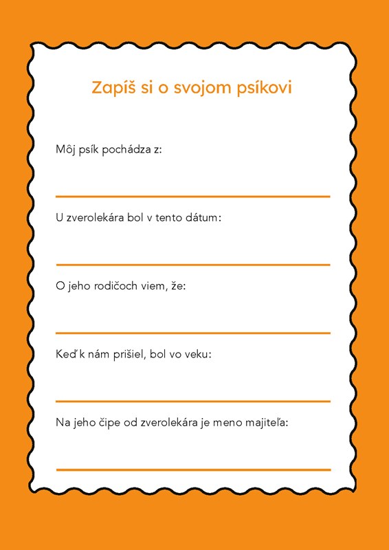 Môžeš si zapísať, aký je tvoj chlpáč a čo má rád, nalepiť si sem spoločné fotky či zaznamenať si vaše spoločné dobrodružstvá.