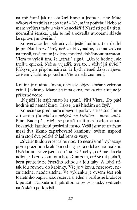 12 dní, 24 hodin denně strávené v kabině jednoho kamionu, které promění obyčejnou reportáž v brutálně upřímnou zpověď hlavní hrdinky.