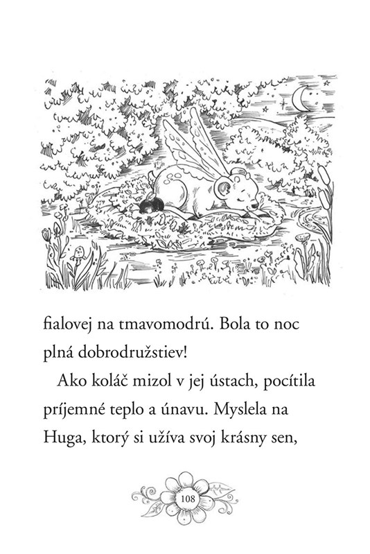 Srnka Sára zbožňuje lietanie za svitu mesiaca. Jej úlohou v Kúzelnom lese je šepkať šťastné sny do uší spiacim vílím zvieratkám. Jednej noci sa však stretne s malým vystrašeným ježkom, ktorý sa bojí zaspať. Dokáže ho Sára presvedčiť, že sa v lese nemusí báť?