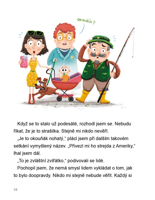 Ota si vymyslí, že je to okouňák nohatý, začne s ní chodit ven, a dokonce ji vezme i do školy. Chcete vědět, jaká dobrodružství spolu zažijí? Tak se pusťte do čtení!