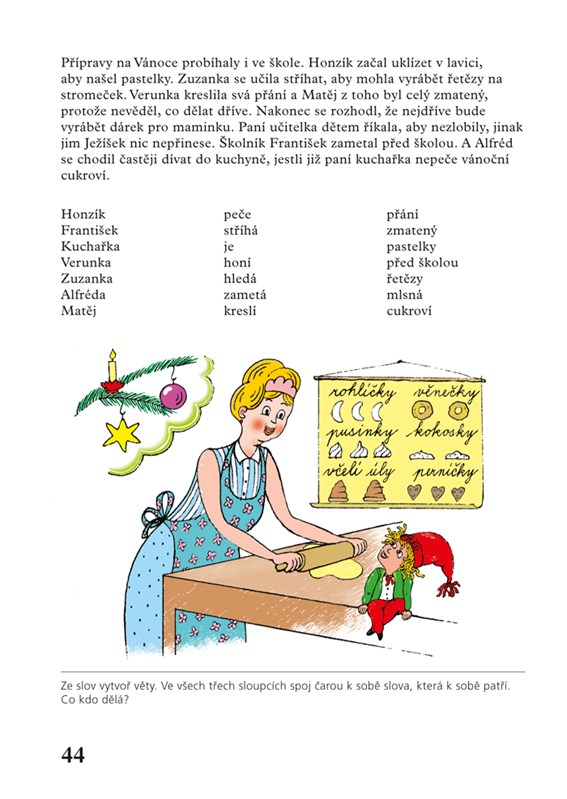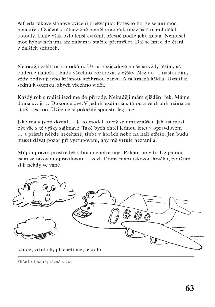 První část tvoří souvislý text, který motivačně stranu uvádí a zároveň může sloužit jako text pro procvičení techniky čtení.