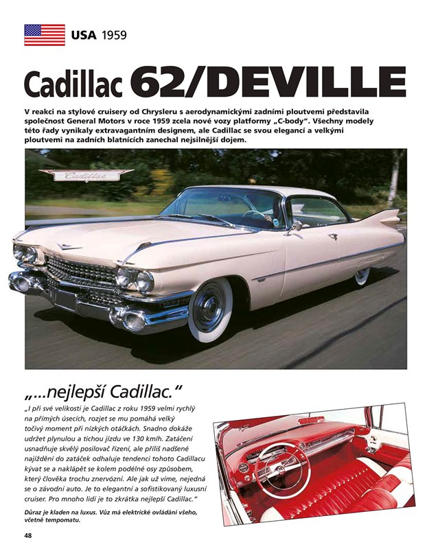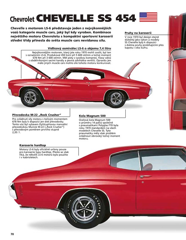 V této jedinečné obrazové encyklopedii, jež mapuje historii automobilismu v USA, naleznete více než 75 ikonických vozů – od Fordu Model T až po Dodge Viper GTS. Přes 1000 barevných fotografií zachycuje nejen elegantní křivky karoserií, ale i všechny podstatné konstrukční detaily. Každý model doplňují podrobné technické a výkonové parametry, informace o jednotlivých verzích i limitovaných sériích. Nechybí nákresy celkových průřezů vozů i dalších prvků, což potěší nejen nadšence, ale i skutečné znalce.