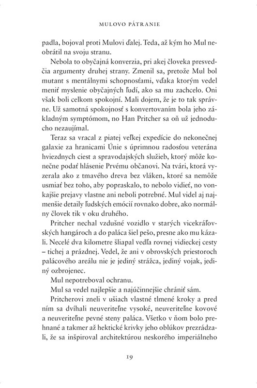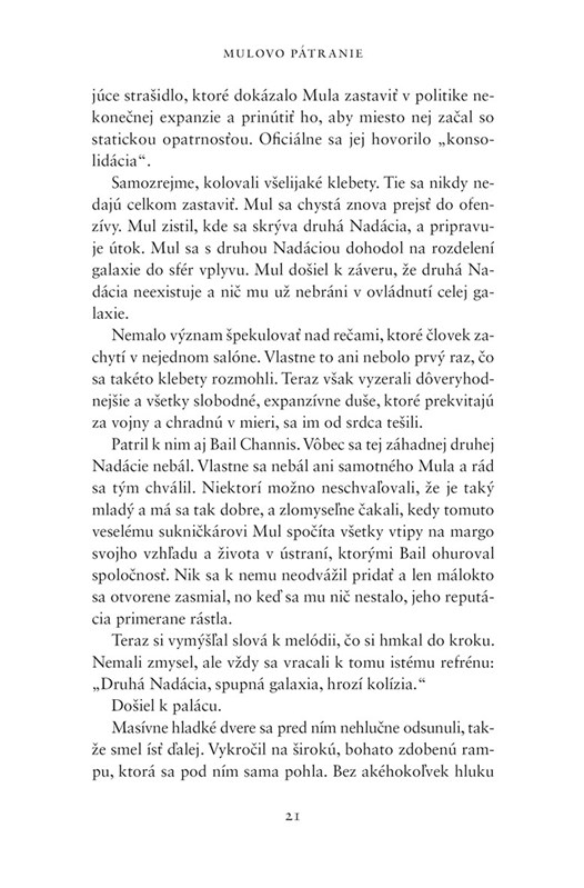 Séria Nadácia je vrcholné dielo svetovej sci-fi literatúry. Romány Isaaca Asimova ponúkajú neprekonateľnú súhru strategických manévrov, novátorských myšlienok a rozsiahleho budovania budúceho sveta. Zaznamenávajú nekončiaci súboj skupiny odvážnych mužov a žien‚ ktorí sú odhodlaní zachovať ľudský život v galaxii uvrhnutej do tridsaťtisícročnej temnoty plnej násilia a nekončiacich bojov.