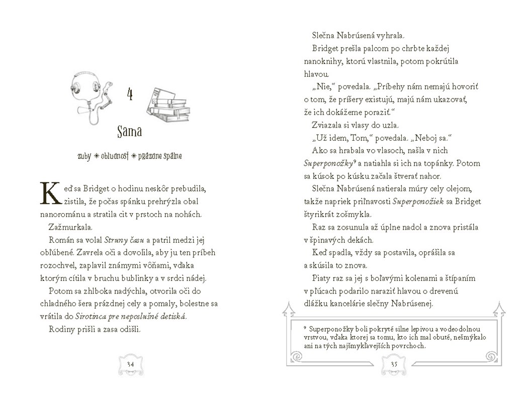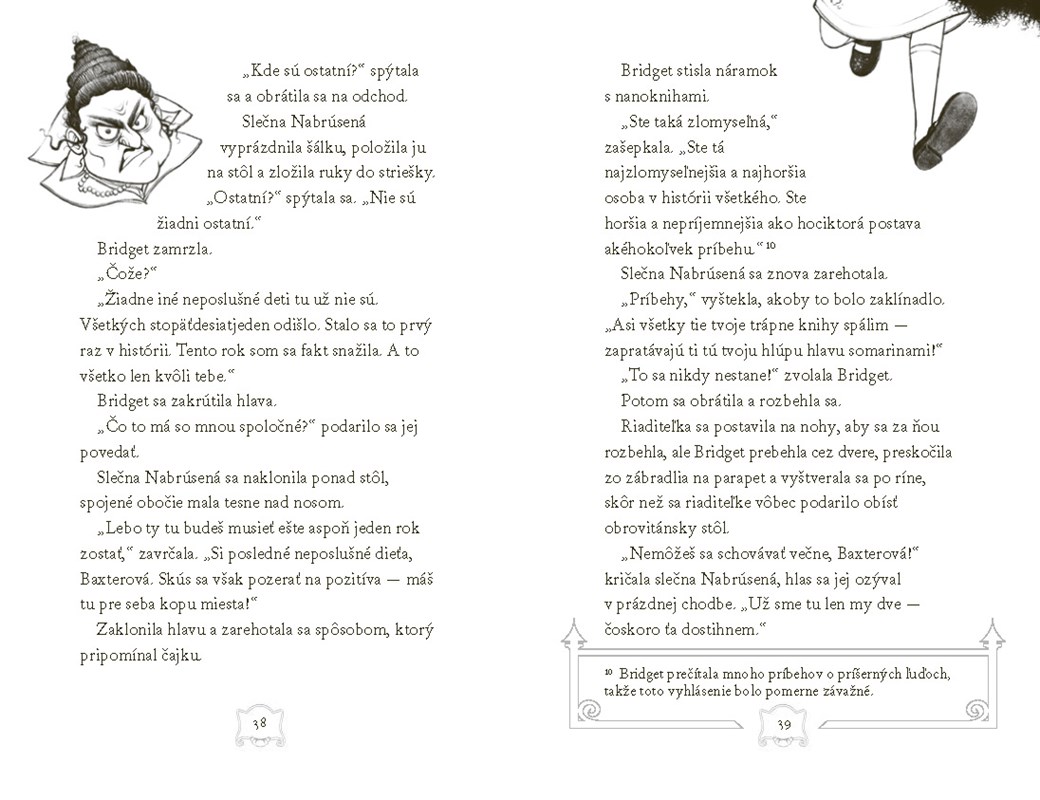 Bridget Baxterová je amatérska detektívka a bystrá vynálezkyňa rôznych užitočných, no zvláštnych vecičiek. V Sirotinci pre neposlušné detiská je ako posledná vydaná na milosť a nemilosť hnusnej riaditeľke Nabrúsenej, ktorá Bridget nenávidí a snaží sa jej urobiť zo života peklo.