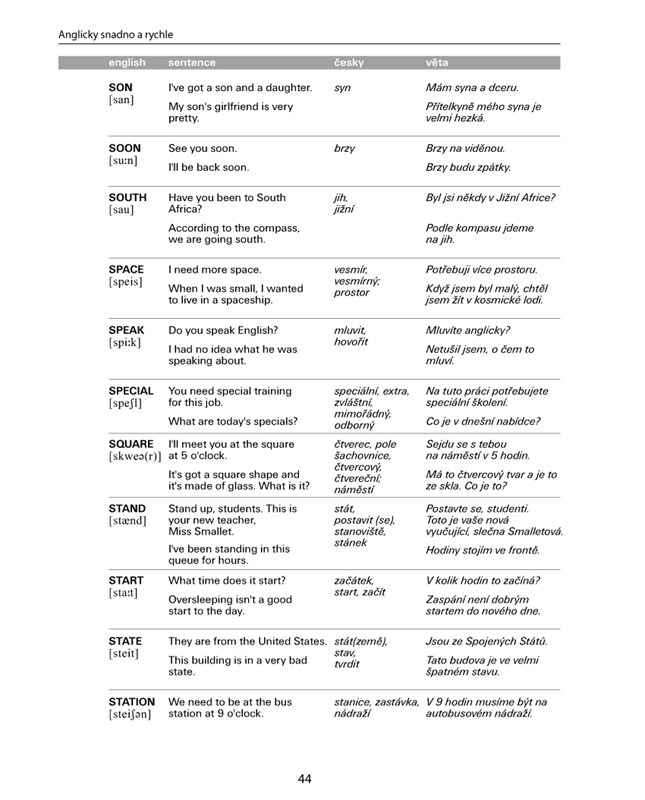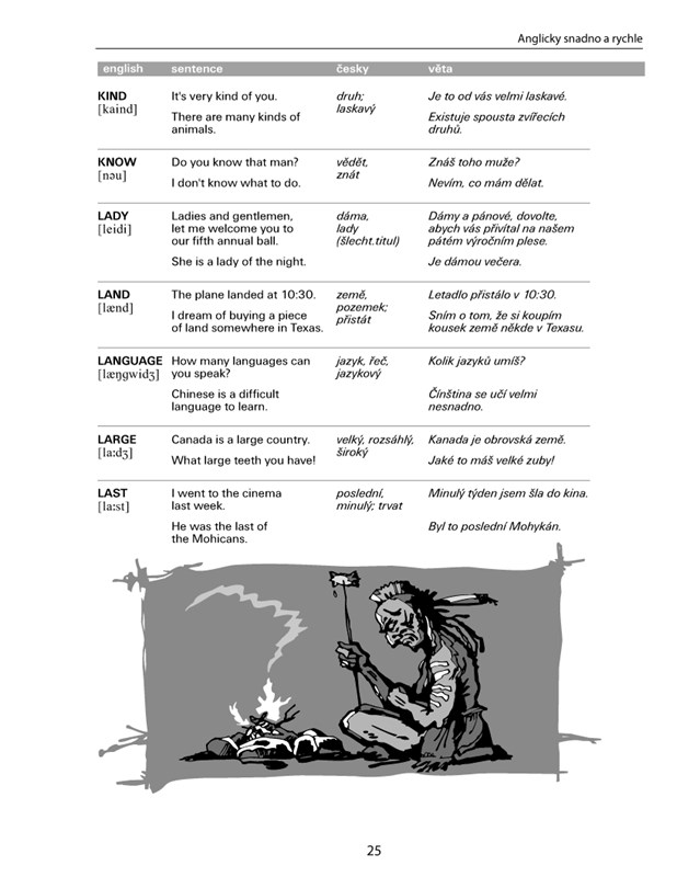 Útlá knížečka obsahuje 500 nejpoužívanějších anglických slovíček s uvedenou výslovností a českým překladem. U výrazu najdete připojeny dvě typické anglické fráze - abyste si vštípili, jak je výraz používán v běžném jazyce. Součástí balení je AUDIO CD, které nabídne veškerý anglický text namluvený rodilým mluvčím. Můžete se tak slovíčka i fráze učit poslechem i pohledem zaráz. Brzy si je snadno a pevně osvojíte!