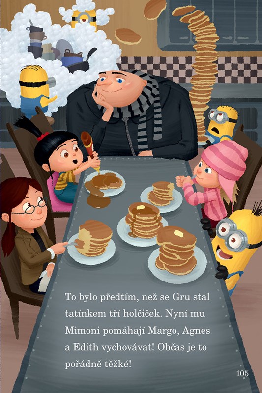 Seznamte se se slavným superpadouchem, jeho věrnými parťáky ve zločinu i celou Gruovou rodinou! Připomeňte si nejlepší okamžiky z filmů a procvičujte si čtenářské dovednosti se známými hrdiny. Zjistěte, jak si Gru poradil se lstivým nepřítelem se zmenšovacím paprskem, co všechno zažil, když vyrazil se svými holčičkami na pouť a na baletní představení, nebo si přečtěte, jak mu byla na stopě tajná agentka z Antipadoušské ligy. S knížkou plnou vtipných příběhů o Mimoních se nebude nudit ani chviličku!
