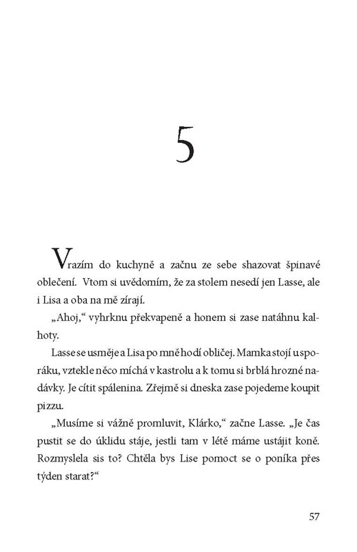 Klára je vlastně docela spokojená. V jezdecké škole se stala ošetřovatelkou, takže když už poník Sigge není její, může se o něj alespoň starat. Při ježdění ji občas trochu pozlobí, ale i tak ho má ze všech koní nejraději. Jednoho dne se ale dozví, že jezdecká škola možná Siggeho prodá. Situace se navíc komplikuje i doma. Lasse s mámou se do sebe zakoukali a Lasse navíc trvá na tom, aby se Klára skamarádila s jeho dcerou Lisou, jenže ta je hrozně protivná a Klára si s ní vůbec nerozumí. Jako by toho nebylo málo, Klářina nejlepší kamarádka Anna po návratu z vánočních prázdnin pořád mluví jen o klucích, o svého poníka Putteho se skoro nestará a Klára si s ní už moc nerozumí. Vypadá to ale, že by se na ni konečně mohlo usmát štěstí. Dostane vlastního poníka, o kterém tak sní? Druhý díl Klářiných příběhů.