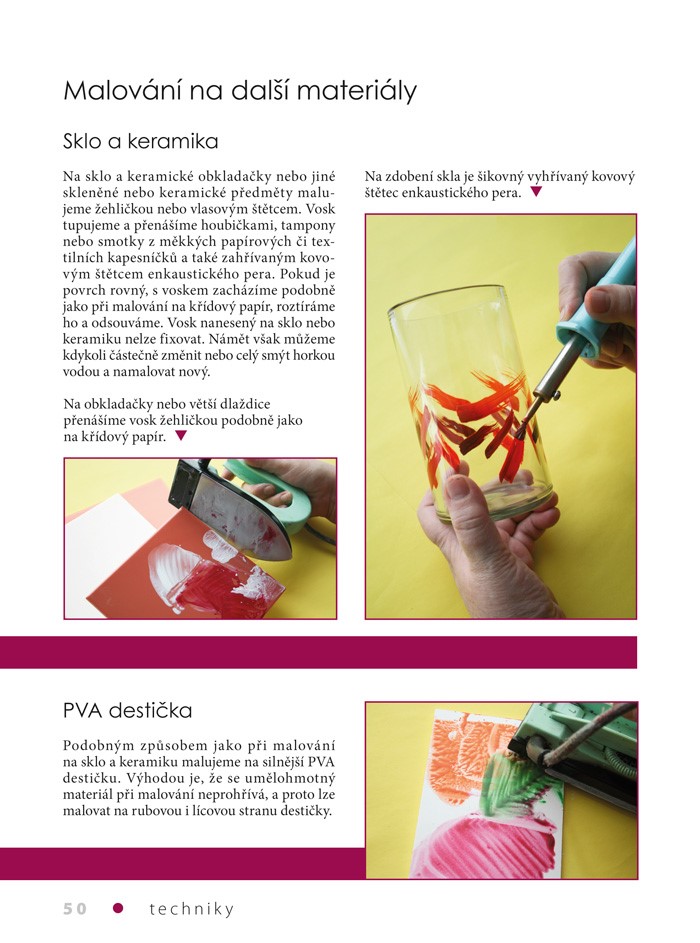 Pokud jste si oblíbili techniku malby a rádi byste si vyzkoušeli i její méně známé varianty, je tato kniha určena právě pro vás. Představí vám specifika techniky enkaustiky, při jejíž tvorbě se rozpuštěný barevný vosk pomocí speciálních enkaustických pomůcek (žehlička, pero, enkaustická deska apod.) nanáší na nejrůznější povrchy (papír, textil, dřevo, sklo, keramika, PVC apod.). Autorka vás nejdříve seznámí se všemi potřebnými pomůckami i materiály a poté se již bude plně věnovat jednotlivým enkaustickým technikám. Díky barevným fotografiím a názorným postupům už pak bude zhotovení některého z uvedených 12 projektů hračkou i pro úplné začátečníky v oblasti malování horkým voskem.
