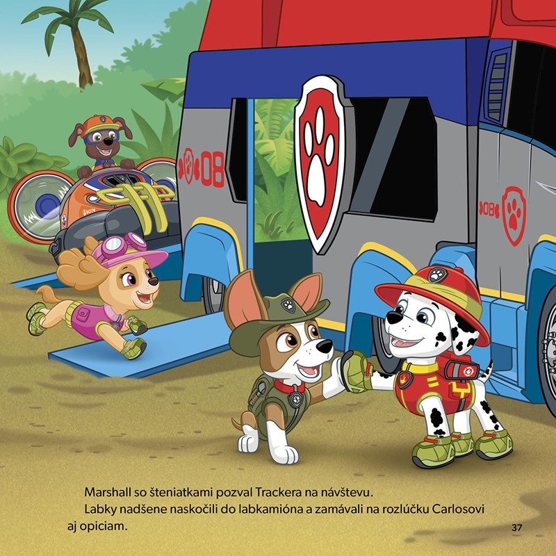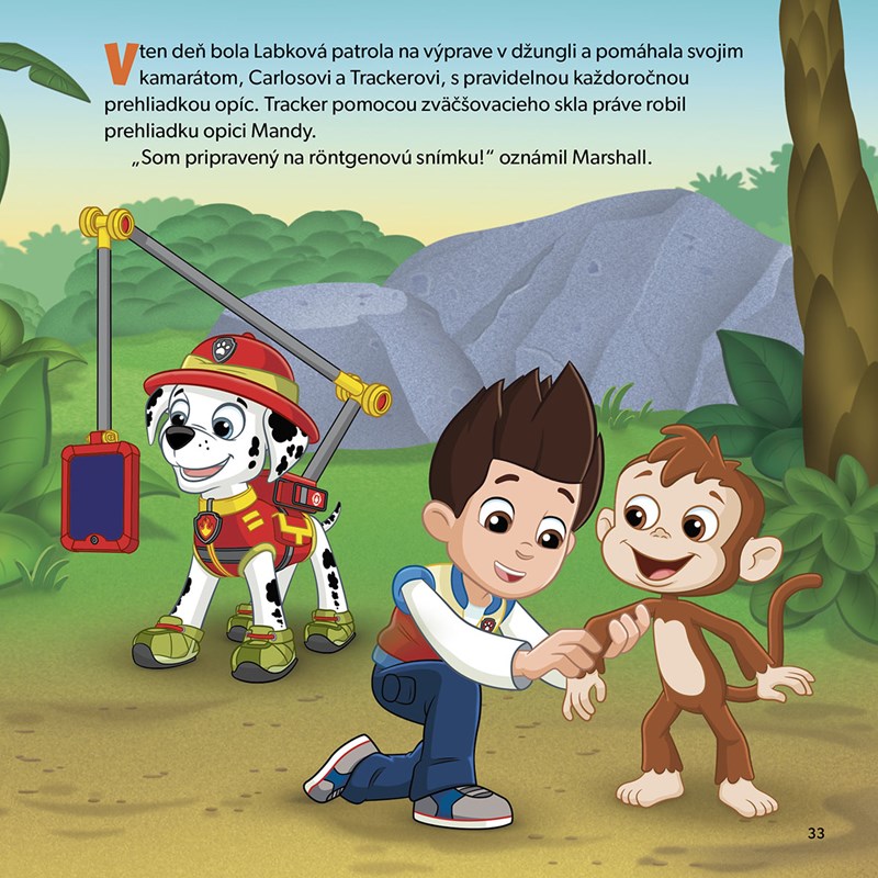 Vyberte sa s obľúbenými záchranárskymi šteniatkami na výpravu do džungle. Čakajú vás dve rozprávky o dobrodružstvách zohratého tímu známych hrdinov. Prečítajte si, čo všetko zažili, keď sledovali neznáme zviera, alebo ako dopadla lekárska prehliadka u opičiek.