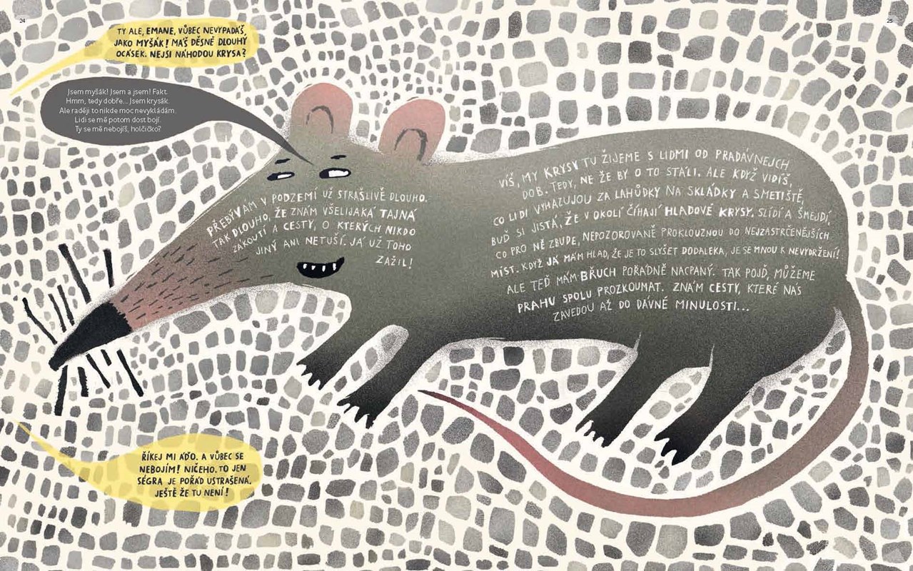 Víte, jak to bylo s Golemem a kde je zahrada mrtvých? Nebo co dokážou vyčarovat alchymisté? A k čemu sloužily kašny a proč si raději nehrát na mostě na andílka? Holčička Áďa se ocitla v Praze dávných dob a se svými novými kamarády se vydává na cestu za dobrodružstvím. Během svého putování městem do minulosti objeví odpovědi na tyto otázky i na mnoho dalších. Nakonec zjistí, kudy vede cesta domů zpátky za sestrou, ale i to, co se jí ukrývá hluboko v srdci.
