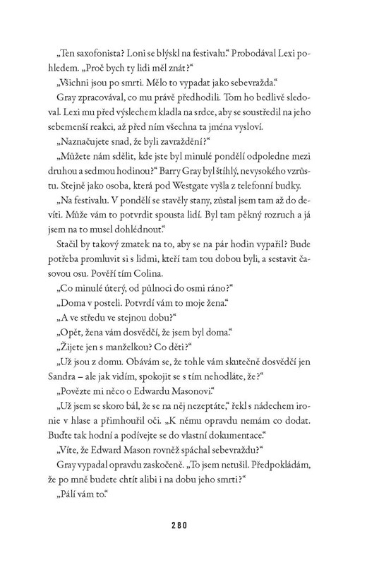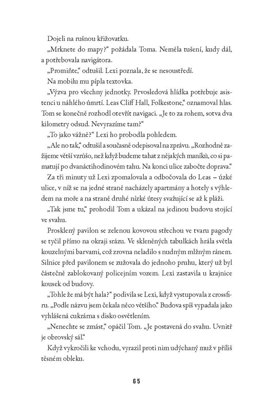 Detektiv Lexi Bennettová se prochází ulicemi Canterbury, když zaslechne křik. Pod jednou z městských věží najde ležet tělo dospívající dívky. Skočila, spadla, nebo ji někdo strčil? Oliviini zoufalí rodiče tvrdí, že jejich dcera, talentovaná hudebnice, neměla pro sebevraždu důvod – a to samé tvrdí Lexiin synovec Sam, který Olivii znal. Když dojde k podobné události, rozhodne se Lexi dokázat, že jde o dílo sériového vraha. Dokáže ho zastavit dřív, než se nelítostný zabiják zaměří i na její rodinu?.