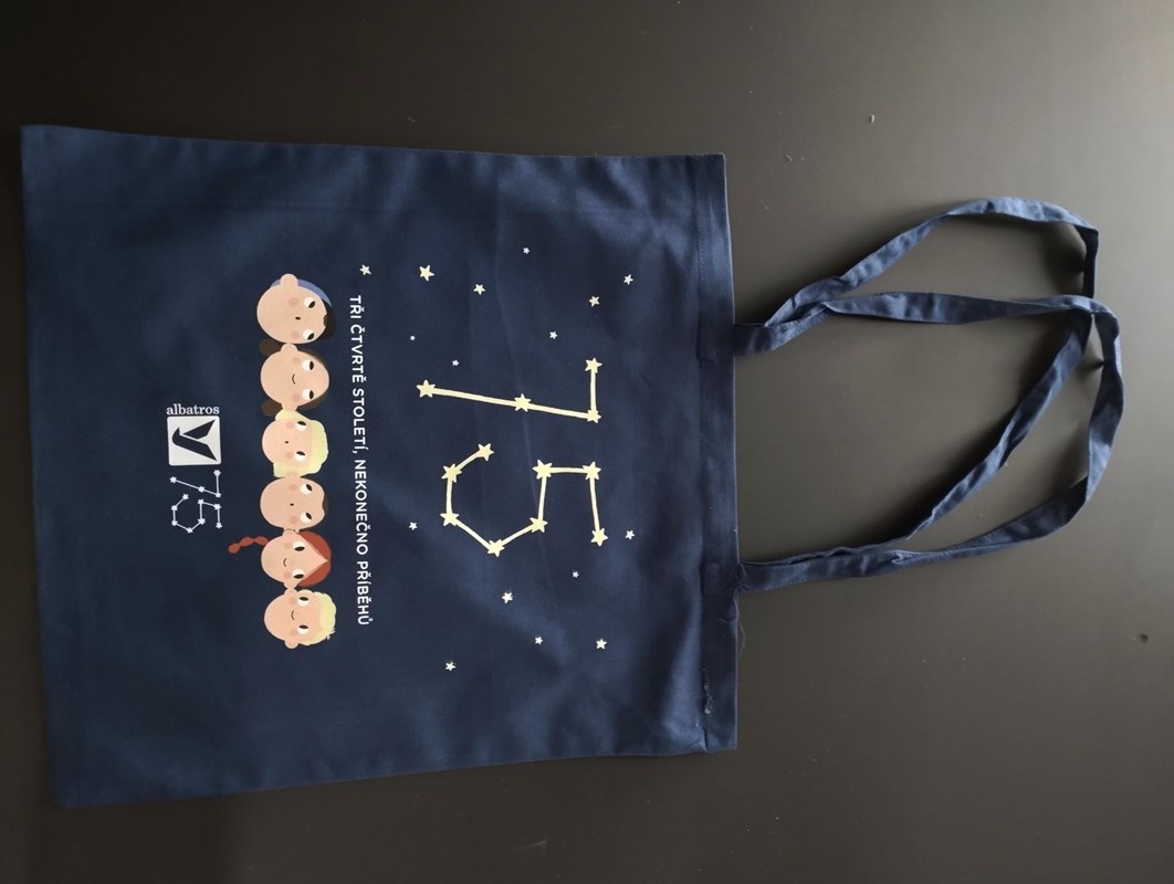 Plátěná taška s výroční ilustrací od Terezy Konupčíkové, která vznikly k 75. výročí nakladatelství Albatros.