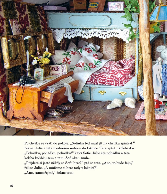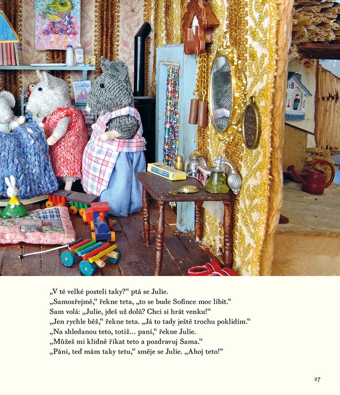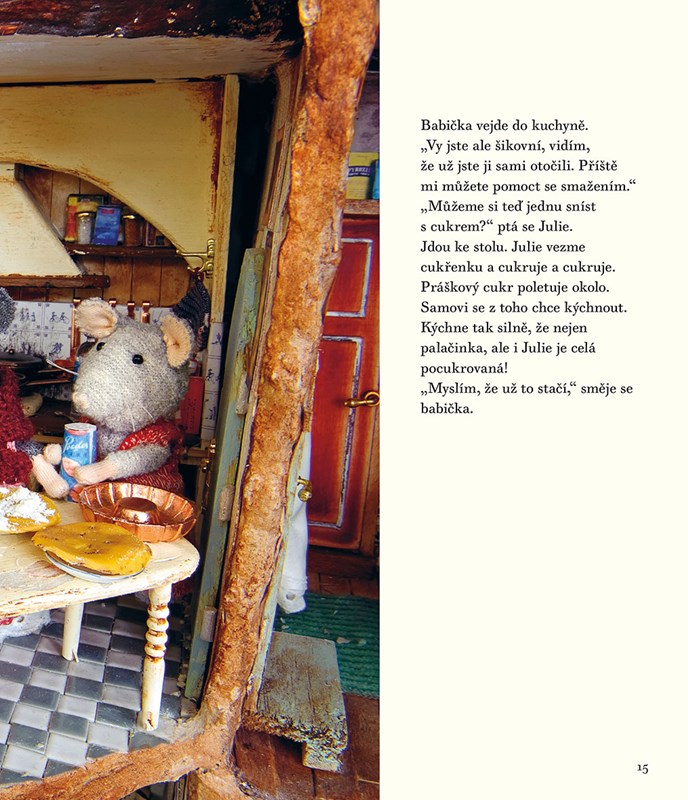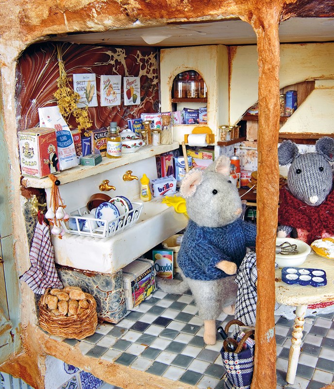 Projekt Dům myšek vytvořila Karina Schaapman jako dekoraci do této dětské knížky. Je vyrobený z kašírovaných kartonových krabic. Na zařízení interiéru použila Karina autentické látky z padesátých, šedesátých a sedmdesátých let a také různé druhy odpadového materiálu. Dům myšek má přední, boční a zadní trakt a je v něm přes sto pokojů, má spoustu chodeb i venkovní prostory. Myšky, které ho obývají, navrhla a vyrobila Karina. Během stavby a zařizování jednotlivých pokojů spontánně vznikaly příběhy do knihy, kde mají hlavní role myšky Sam a Julie.