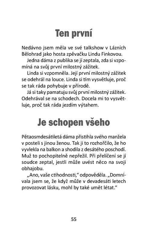 Halina Pawlowská tvrdí, že když slyší slovo „zralá“, vybaví se jí sýr, u kterého je nejvyšší čas ho zkonzumovat. Zároveň ale říká, že zralost je báječná! Buď z toho důvodu, že si můžete gratulovat, že jste se dožili už pěkného počtu let, anebo proto, že jste sice ještě velice mladí, ale jste jedinci s moudrým pohledem na svět.