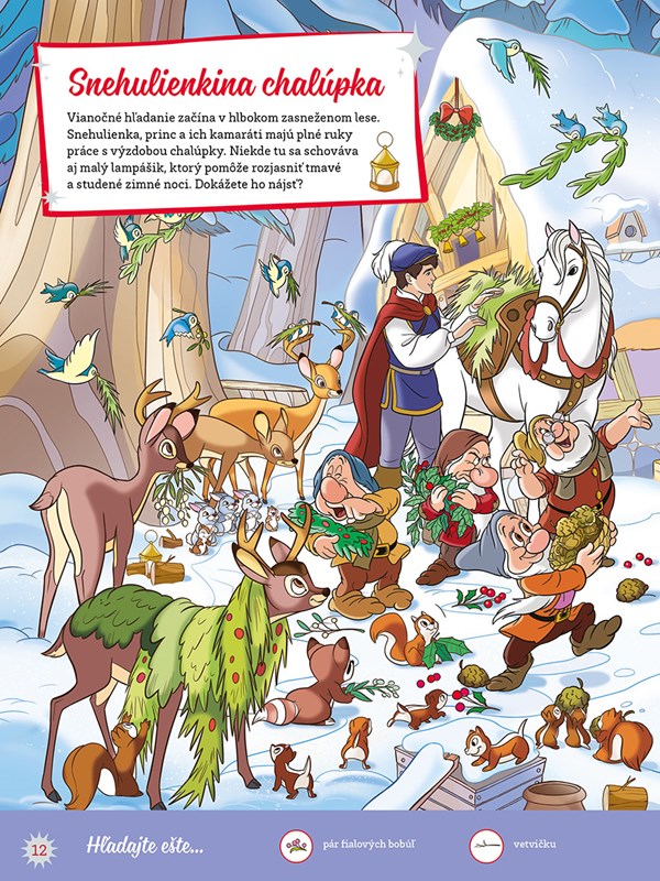 Prichádza obdobie radosti a dobrých skutkov. Užite si sviatočnú atmosféru s touto krásnou knihou plnou rozprávkových svetov. Hľadajte štrnásť vianočných predmetov ukrytých v kúzelných lesoch, honosných zámkoch alebo v útulných domčekoch. Ale zábava tým nekončí! Ak máte bystré oči, nájdete aj veľa ďalších schovaných vecí.