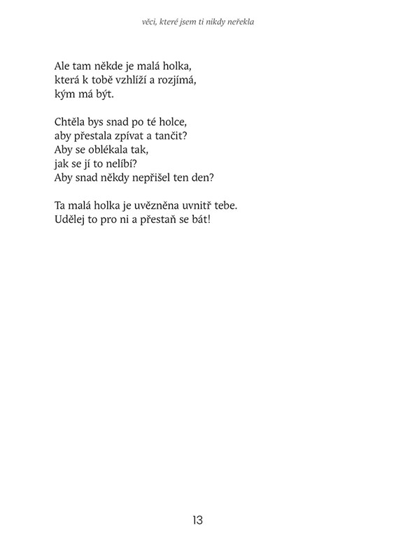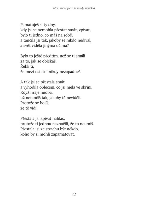 Sbírka básní o první lásce, která nikdy úplně nevyhasne. O vzpomínkách, co pálí jako staré dopisy ...