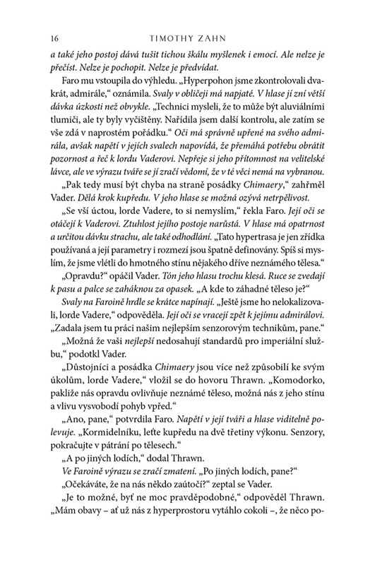 Osudová slova, hlavně když jsou vyřčena císařem Palpatinem. Na Batuu, hraničním světě Neznámých oblastí, zapouští kořeny hrozba Impériu. Existuje zatím jen v náznacích, jejichž důsledky nelze tušit. Vůdci Impéria však přesto stojí za to, aby pověřil jejím prošetřením své nejschopnější zástupce: nemilosrdného vykonavatele lorda Dartha Vadera a brilantního stratéga velkoadmirála Thrawna. Zdá se nepravděpodobné, že by se tito velcí soupeři o přízeň císaře a otevření odpůrci v imperiálních záležitostech – včetně projektu Hvězdy smrti – dokázali společně vydat na tak klíčově důležitou misi. Císař však ví, že to nebude poprvé, kdy Vader spojí síly s Thrawnem. A za jeho císařským rozkazem je mnohem víc, než ti dva tuší.