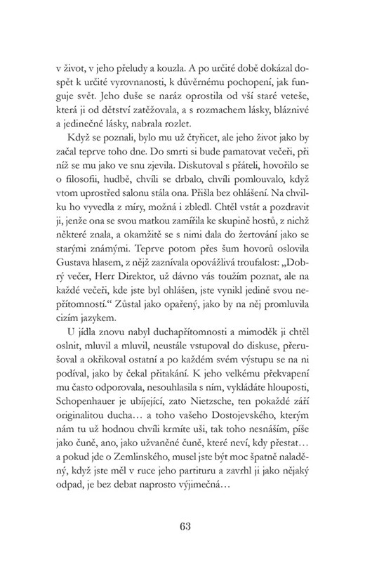 Je léto 1910, poslední rok života Gustava Mahlera, oslavovaného i nepochopeného moderního skladatele, Žida, který veřejně přijal křesťanství, aby se mohl chopit taktovky orchestru vídeňské Dvorní opery a zároveň Vídeňské filharmonie. Jeho ženou je ve své době nejžádanější rakouská debutantka, svůdná Alma Mahler, která stála modelem Gustavu Klimtovi, učila se komponovat u Alexandera Zemlinského a svou ráznou krásou omámila řadu významných mužů. Po Mahlerově smrti se stane milenkou malíře Kokoschky, potom manželkou architekta Waltera Gropia a nakonec se vdá za spisovatele Franze Werfela.