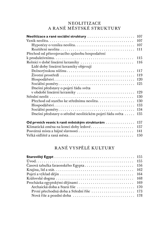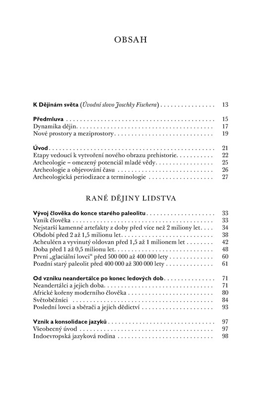 První svazek šestidílné edice zpracovává nejstarší dějiny v širokém geografickém záběru od Afriky přes Evropu a Asii až po Ameriku. Editorem svazku je emeritní profesor archeologie na univerzitě v Münsteru Albrecht Jockenhövel. Úvodní kapitoly sledují fyzický a mentální vývoj rodu Homo sapiens. Od počátku doby kamenné až po její konec před zhruba 10 000 lety byly jedinými způsoby získávání obživy lov a sběr – ty také přispěly k zformování dnešní podoby člověka a umožnily mu rozšířit se ještě před koncem doby ledové po všech kontinentech. S počátkem neolitu začala vznikat první velká sídliště a předměstské struktury, jež se pak přirozeně vyvinuly v první vyspělé civilizace. V centru pozornosti jsou nejen nejznámější civilizace starověku – Egypt, Mezopotámie, Arabský poloostrov, povodí Indu, říše Chetitů v Malé Asii či Středomoří –, ale i nejstarší kultury Afriky, Číny, starověké Ameriky a odlehlé oblasti na okraji obydleného světa, v Arktidě. Autoři uplatňují širokou škálu přístupů zahrnující sociální, hospodářské a kulturní dějiny, a přinášejí tak plastický obraz nejstarší minulosti světa.