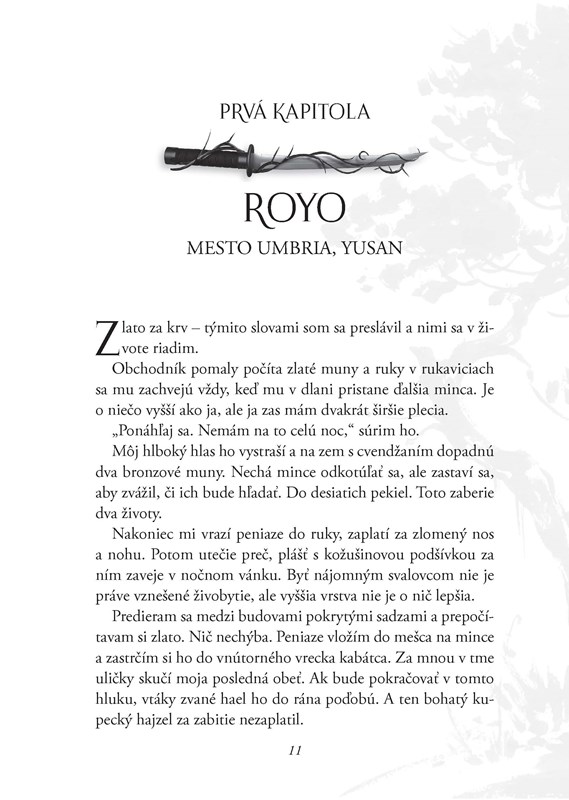 Teraz si po kráľa ide päť mečov. Každý z nich má dôvod ho zabiť – nájomný vrah hľadá vykúpenie, krásna vrahyňa túži po slobode, princ sa chce pomstiť, že ho poslali do vyhnanstva. Nikto z nich nedokáže odolať sladkému, mrazivému vábeniu pomsty.