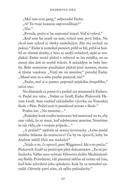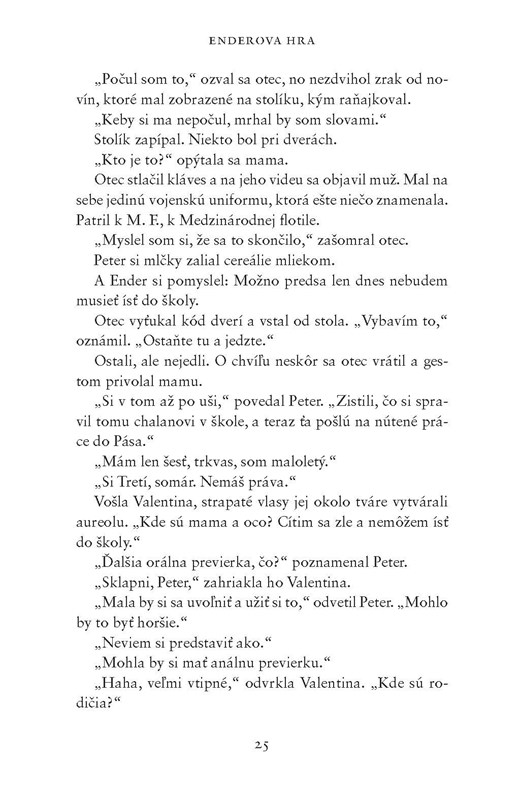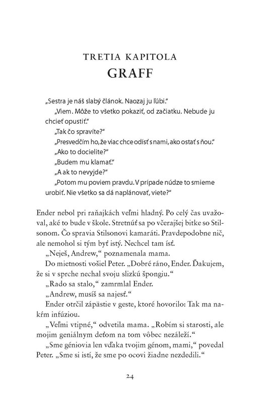 Je Ender generál, ktorého Zem potrebuje? Vojna s hmyzákmi zúri už sto rokov a takmer rovnako dlho prebieha hľadanie dokonalého generála. Enderovi súrodenci sú tiež neobyčajní ako on, ibaže iným spôsobom. Vo všetkých troch driemu schopnosti, ktoré dokážu ovplyvniť osud Zeme – Zeme, ktorá však nemá žiadnu budúcnosť, ak Ender zlyhá.